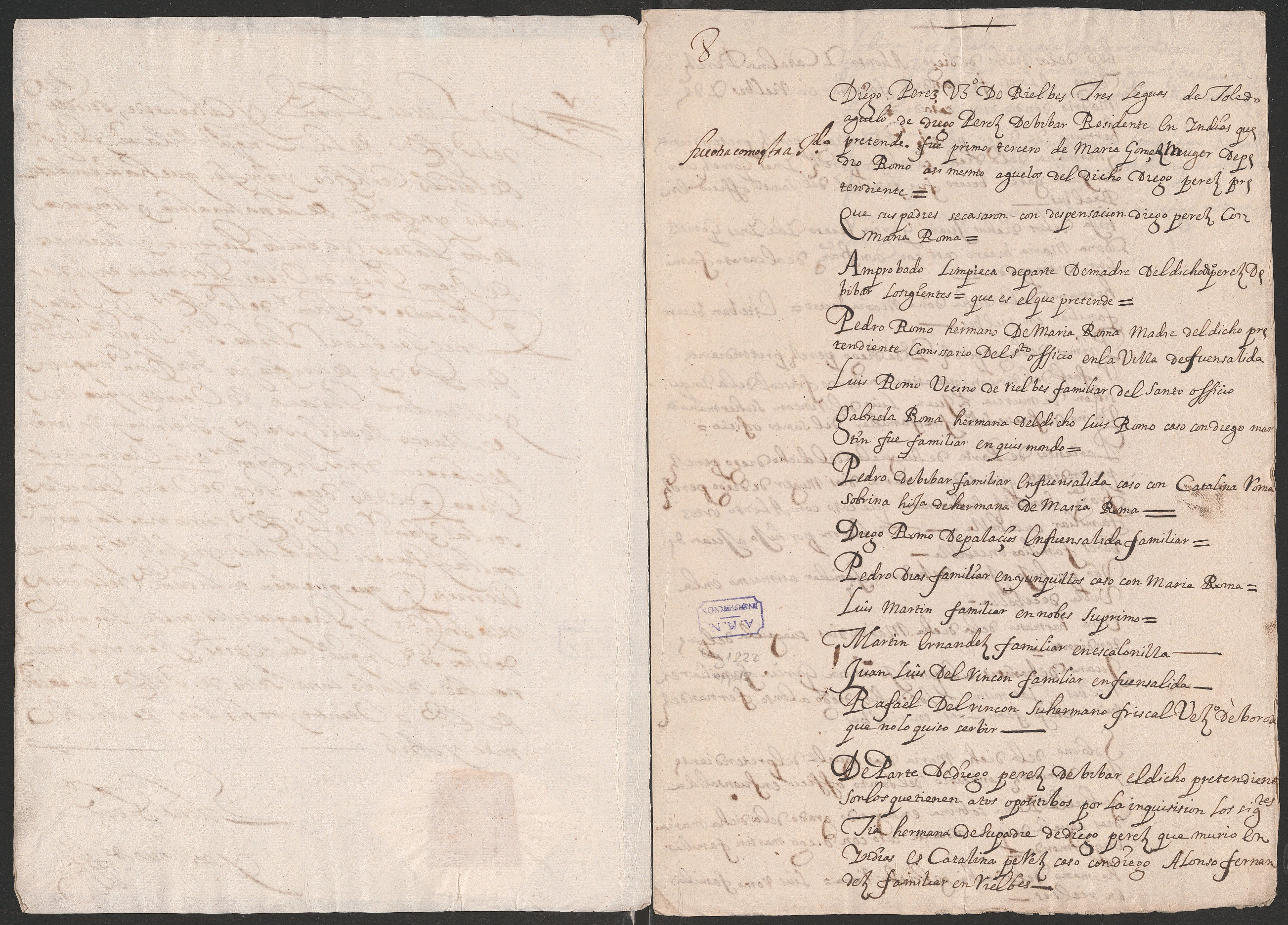 Dossier as Familiar del Santo Oficio of Diego Pérez de Vivar and his wife.